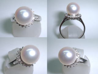 ★☆清楚な上質アコヤ本真珠とプラチナの上品な輝き、ダイヤが取り巻いた華やかなリングです★☆